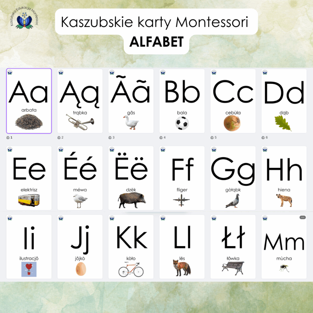 🌿 Darmowa pomoc Montessori – Alfabet Kaszubski A4 🌿 Przygotowałam dla Was coś wyjątkowego – karty A4 z alfabetem kaszubskim.